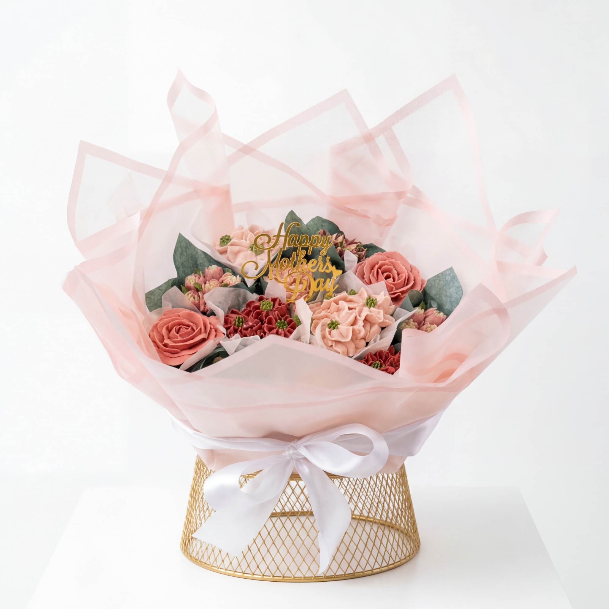Celebrate the moms and mother figures who do it all with something as beautiful as it is delicious. This handcrafted Mother’s Day Cupcake Bouquet features delicately piped buttercream florals arranged into an elegant, gift-ready bouquet—an edible alternative to traditional flowers.